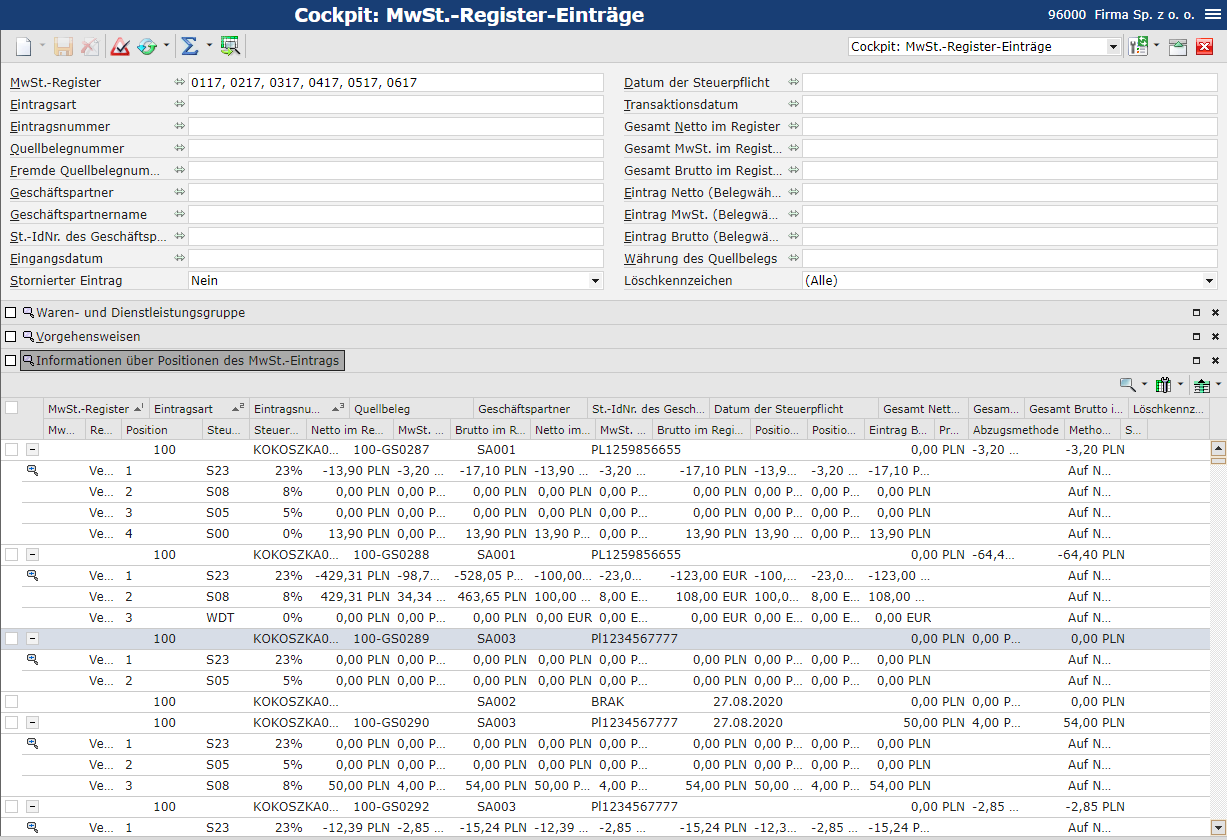 • Informationen über Positionen des MwSt.-Eintrags