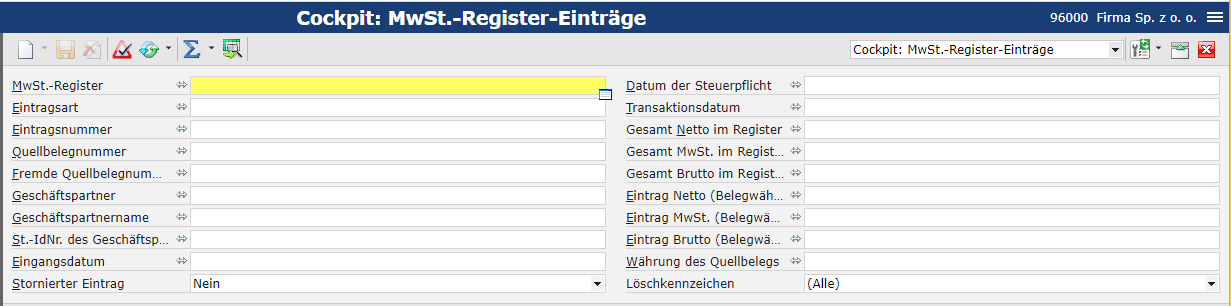 Cockpit: MwSt.-Register-Einträge