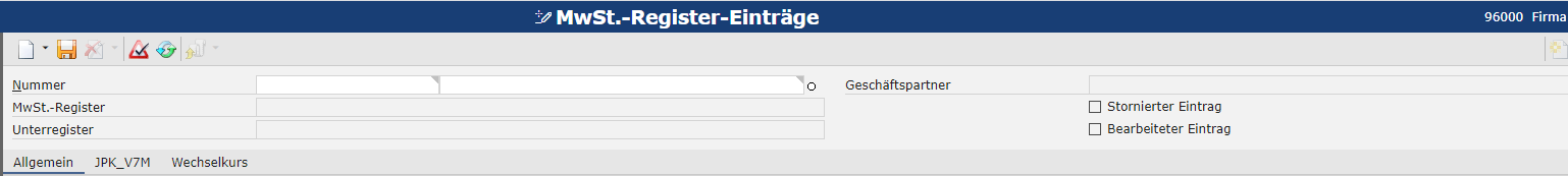 - MwSt.-Register – enthält den Code des entsprechenden MwSt.-Registers