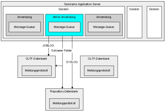 Zusätzlich kann jede Anwendung bei besonderen Ereignissen oder Zuständen Meldungen in das Meldungsprotokoll der Anwendung schreiben. Das ist vor allem für Hintergrund-Anwendungen relevant, deren Ausführung nachvollziehbar sein soll. Diese Meldungen werden auf der OLTP-Datenbank mit Bezug auf die jeweilige Anwendung gespeichert und können über die Anwendung Meldungsprotokolle abgefragt werden.