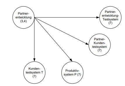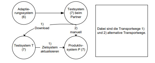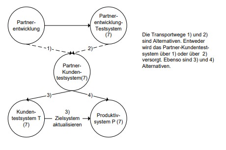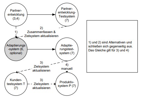 Zwischen einem Entwicklungssystem (Partnerentwicklung, Adaptierung) sollte mindestens ein Testsystem in der Transportlandschaft vorhanden sein.