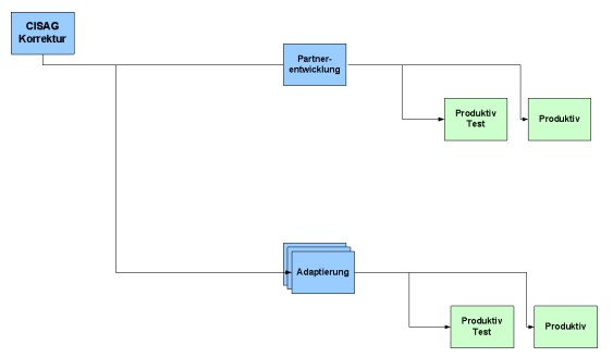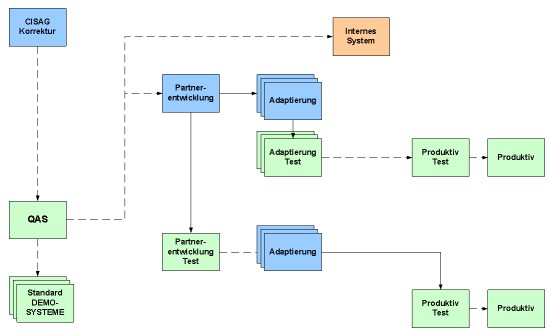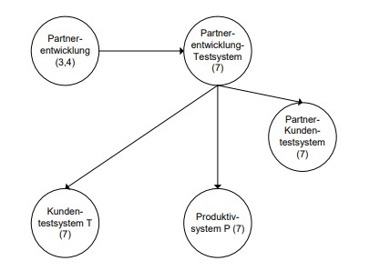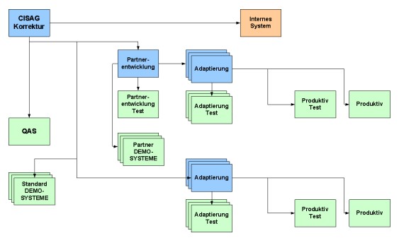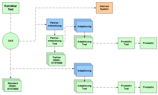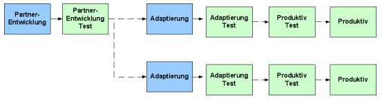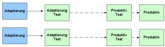 Produktivsysteme werden in der Regel zeitlich wesentlich später als Partner-Entwicklungssysteme aufgesetzt. Der zeitliche Abstand zwischen der Installation eines Adaptierungssystems und Produktivsystemen ist dagegen in der Regel gering.