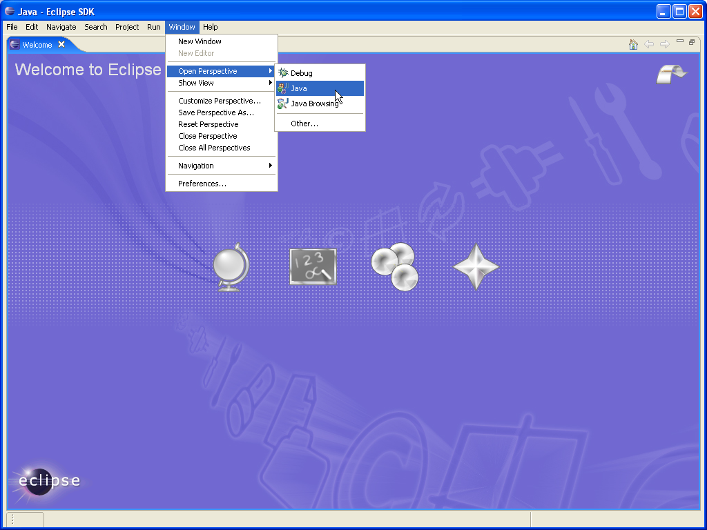 - Wählen Sie in der Eclipse-Menüleiste das Menü Window.