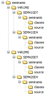 Der source-Ordner ist der lokale Source-Ordner. Darin können die server.properties abgelegt sein. Im Beispiel ist das der Ordner C:/semiramis/V4R2M0/SEM420DV/semiramis/source. - SEM420DV_classes