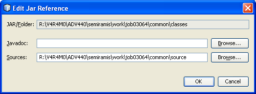 In unserem Beispiel wird den Ordner R:\V4R4M0\ADV440\semiramis\work\job03064\common\source ins Feld Sources eingegeben.