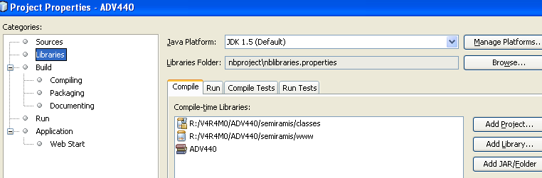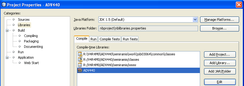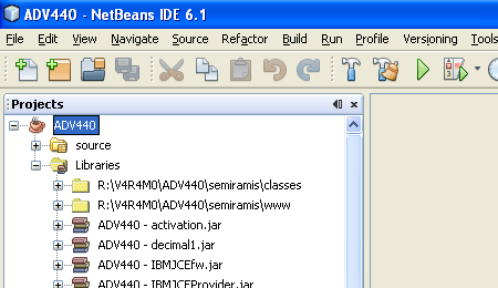 - NetBeans-Bibliothek ADV440, wo die JAR-Dateien, die unterhalb vom V4R4M0/ADV440/semiramis/libs liegen, zusammen gefasst sind.
