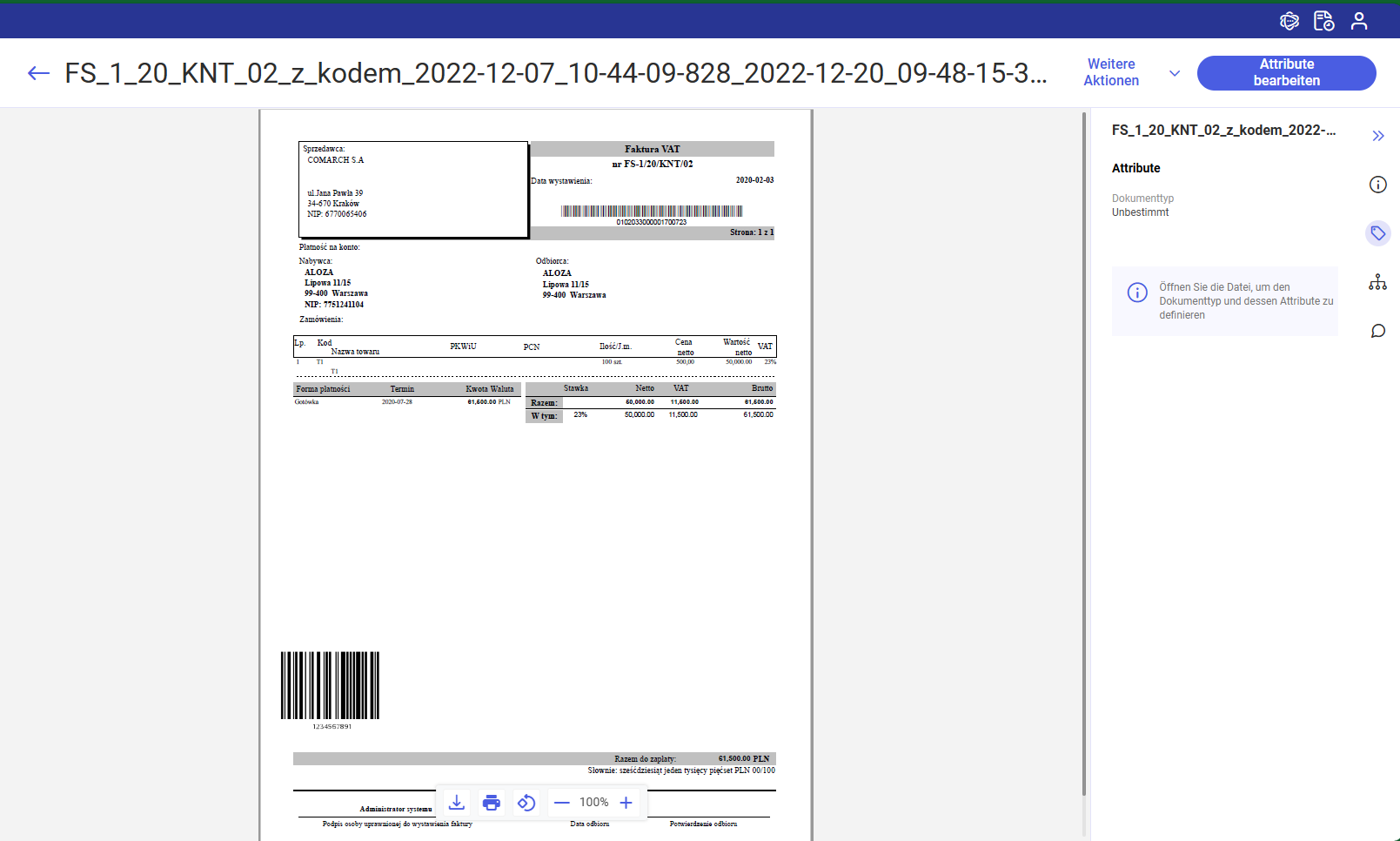 Angezeigtes Dokument, wenn die Suche nach der UUID erfolgreich abgeschlossen wurde – Beispiel