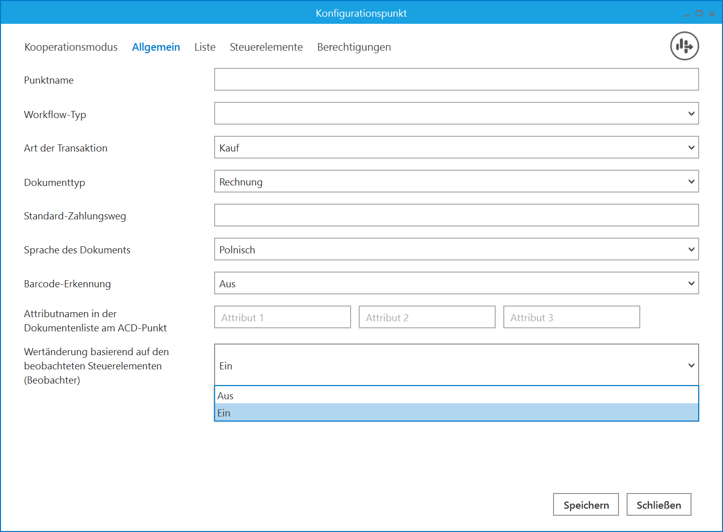 Zu diesem Zweck wurde auf der Registerkarte „Allgemein“ in der Konfiguration der oben genannten ACD-Punkttypen der Parameter „Wertänderung basierend auf den beobachteten Steuerelementen (Beobachter)“ hinzugefügt. Wenn im Feld des Parameters: