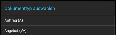 In der mobilen Anwendung im Element der Besuchsvorlage: Die folgenden Dokumenttypen können für die Dokumentenregistrierung ausgewählt werden:
