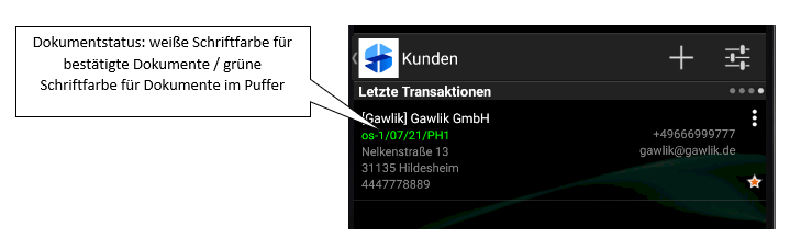 Die Liste Letzte Transaktionen präsentiert Kunden, für die in letzten Zeit Transaktionen registriert wurden. Die Liste wird nach dem Erfassungsdatum des Dokuments aufsteigend sortiert.