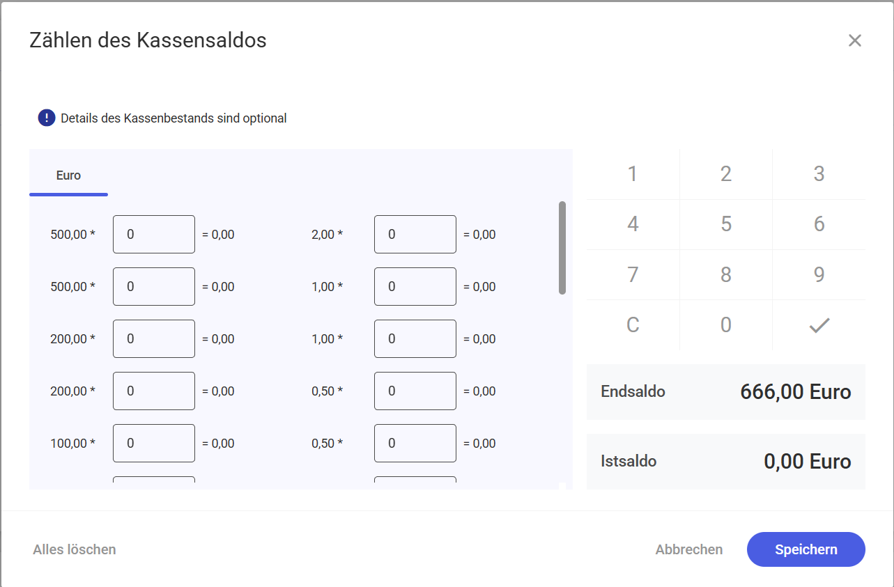 Zählen des Kassensaldos